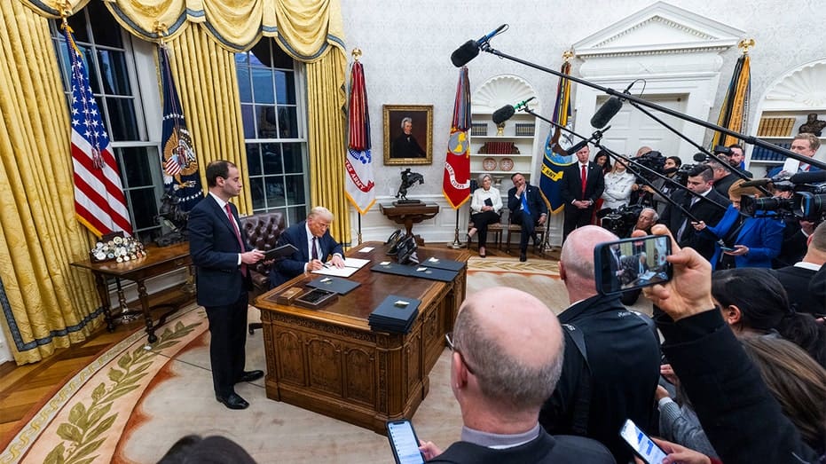 SeanHannitysitsdownwithPresidentDonaldTrumpforanexclusiveinterviewwithFoxNews.